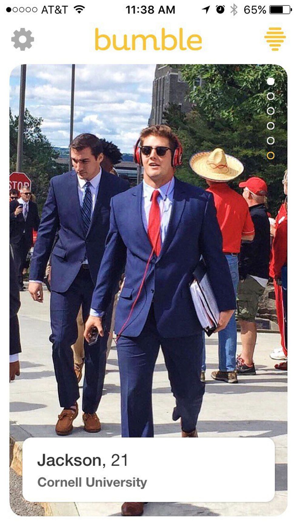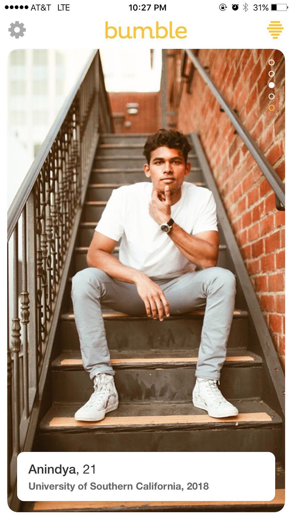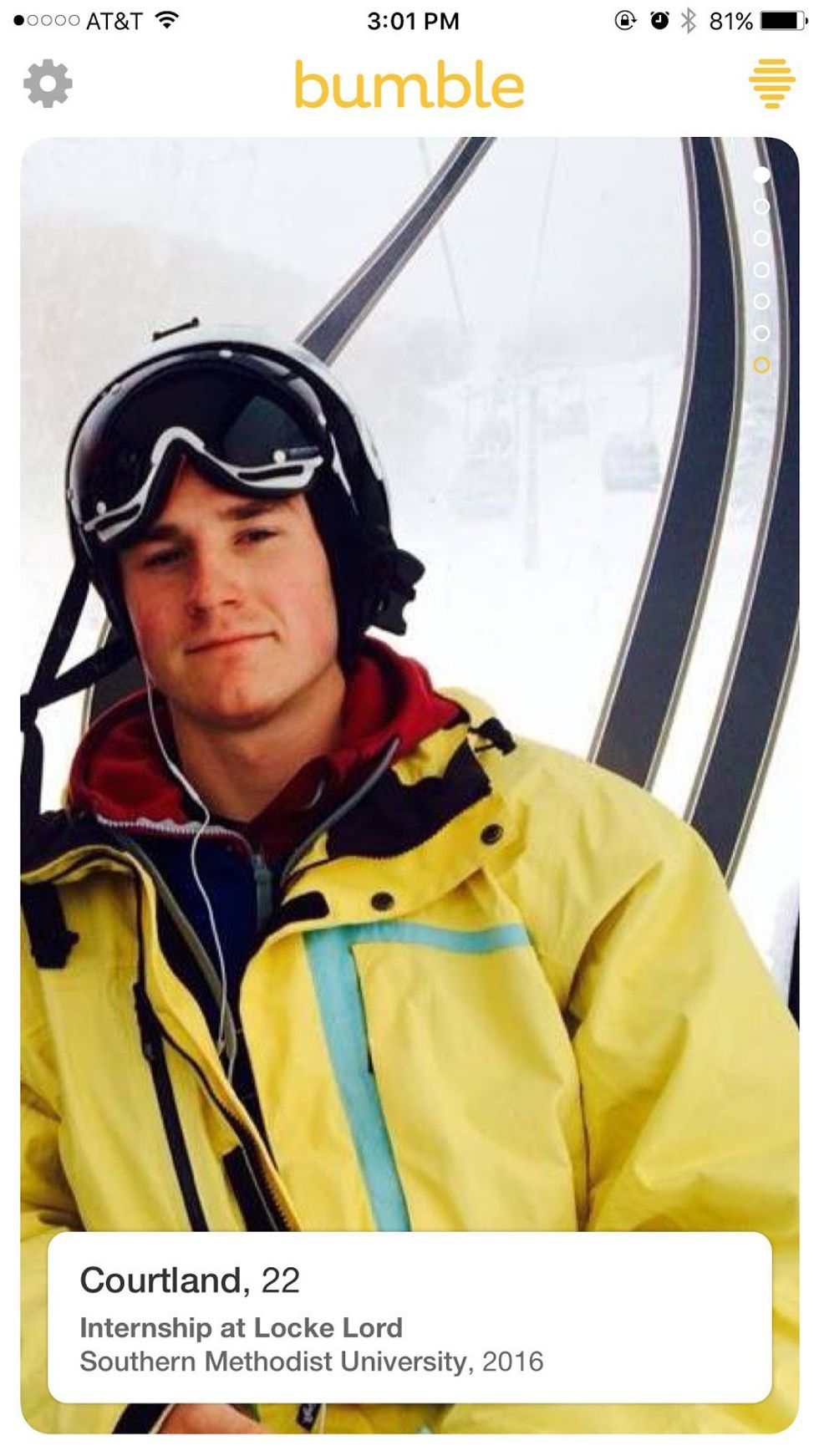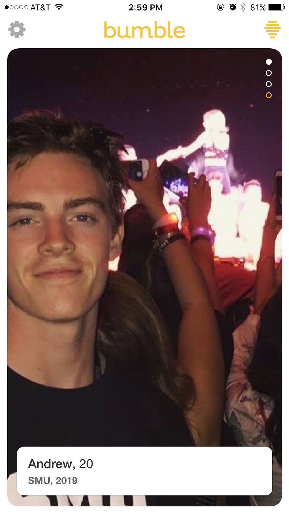 That smile, full disclosure, I may be blushing as I Bumble right now. Drinks? Stargazing? Harambe memorial planning? Matt, I don’t care. I’m yours.