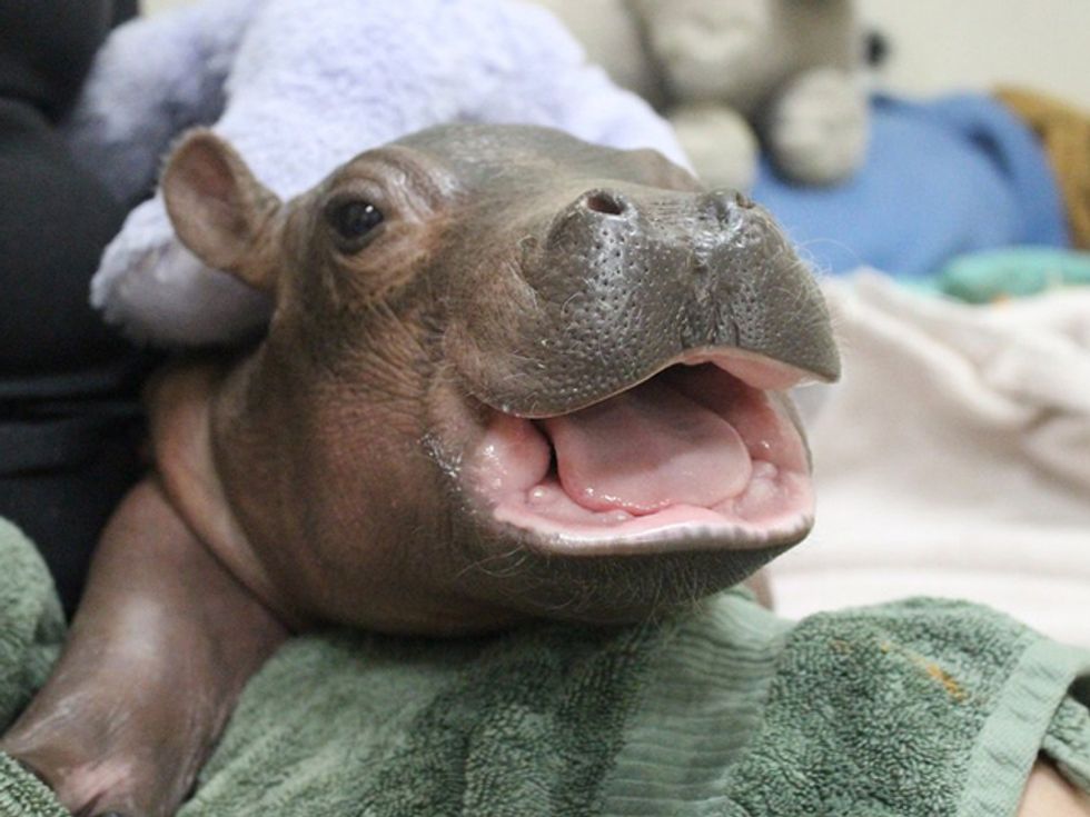 In January, at the Cincinnati Zoo, a hippo gave birth early to a female baby hippo or calf. This baby hippo, expected in March, was born 2 months prematurely - which meant the staff at the zoo had a big job to do in order to raise this premature baby to become a healthy hippo.