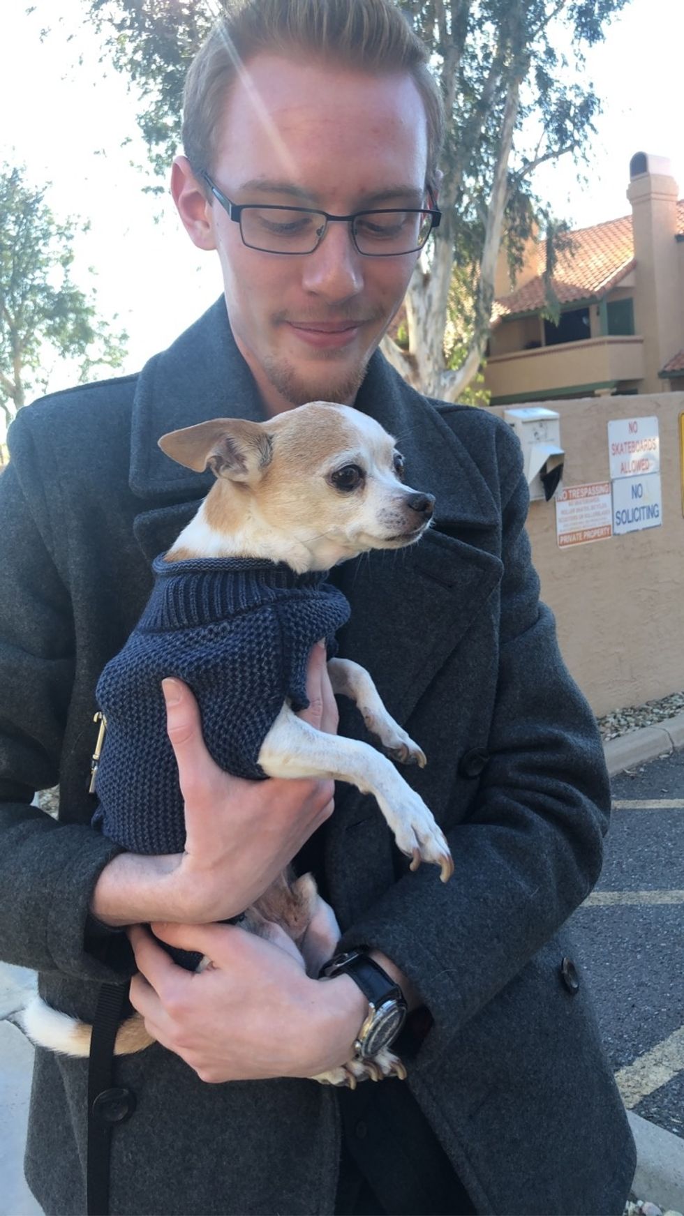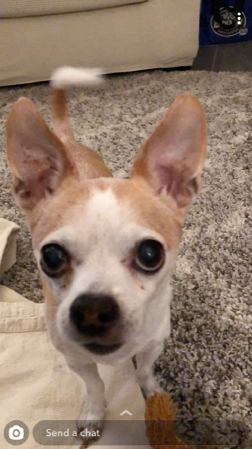 I have never owned a pet in my life and I always vicariously live my pet-owning dreams through my friends' animals. Chip is my boyfriend's precious little rescue Chihuahua. After meeting Chip for the first time, I fell in love with him and we bonded instantly. Every time that I've come over to my boyfriend's house, Chip immediately jumps from his position and comes to me to get all the love and belly rubs in the world. My boyfriend has given me the role of Chip's honorary mommy and it is quite possibly the best feeling in the world to share little Chip with him. I think everyone deserves to know a little about Chip and I will guarantee that you will all fall in love with him as I did.