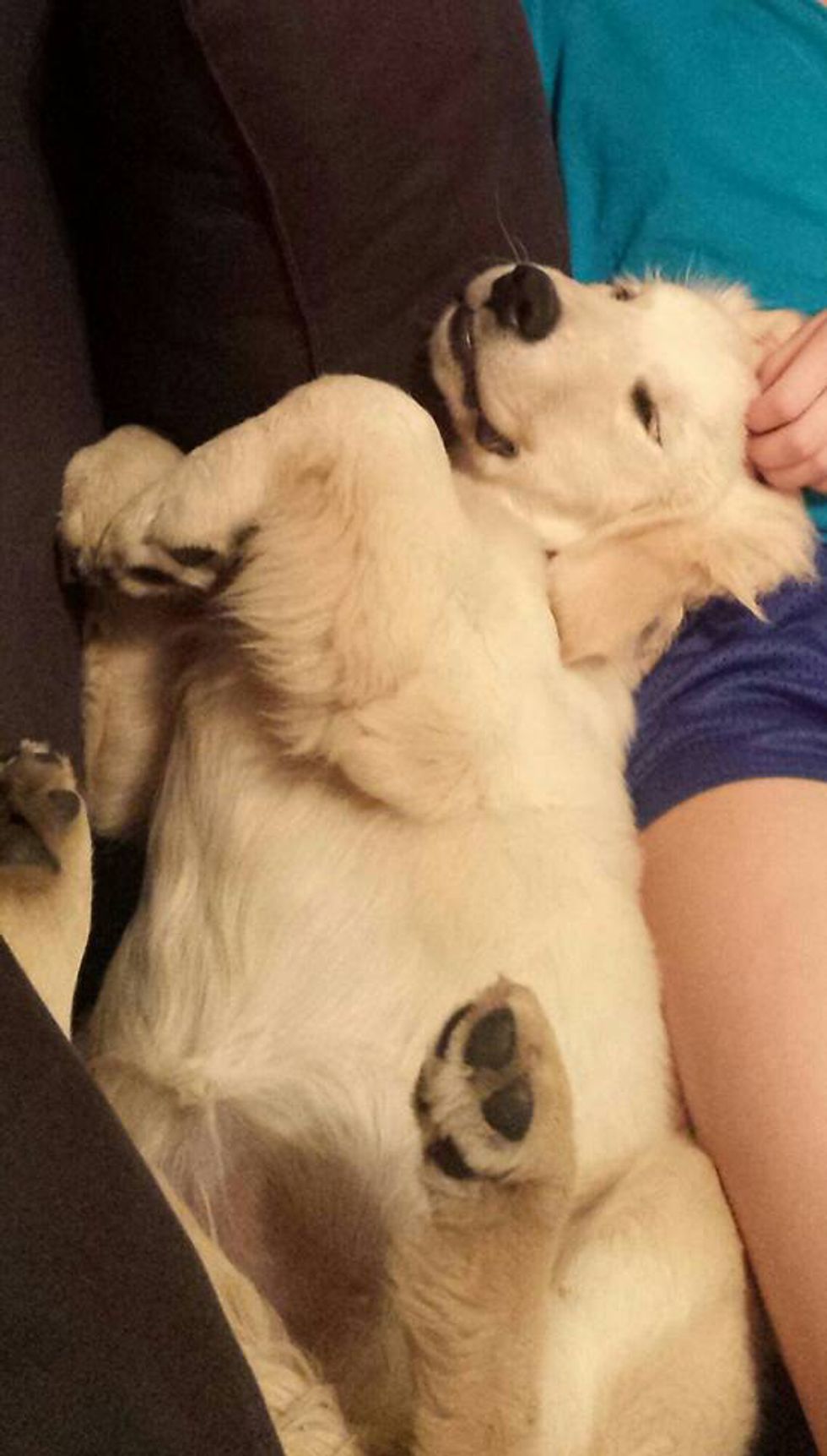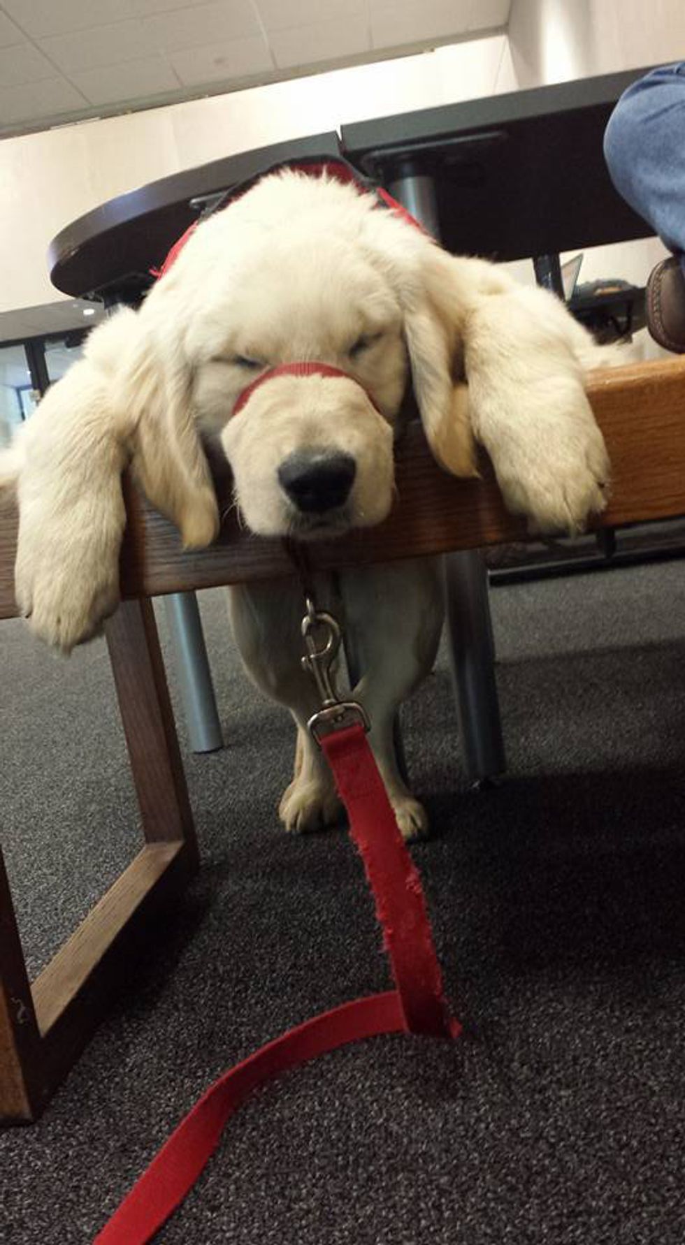 Pets For Vets is good stuff too though. I have SO MUCH FUN whenever I take Becca to the Veteran’s Lounge at Ohio State. I love going there so much to play with the great service men and women trying to relax and take the edge off their day. They’re so happy when I get there! Going there is literally like taking 20 espresso shots of life while getting cuddled the whole time! The smiles on their faces tell all. But if you need more proof, peep my post-Lounge picture below. I’m pretty KO’ed from all the fun we have.