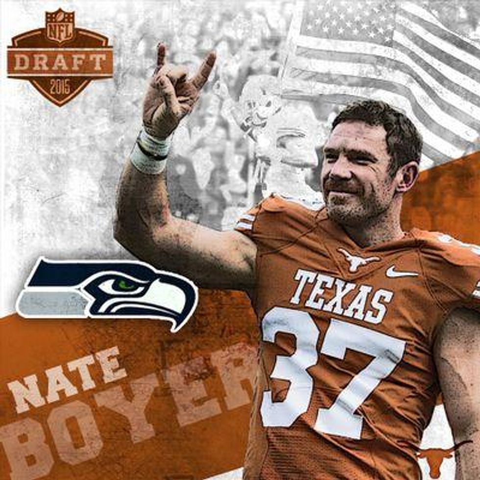 After playing for Texas for five years, he set his sights on the NFL even though his chances of being drafted were slim. After seven rounds of the draft, he was, in fact, not selected, but minutes after the draft ended he was signed by the Seattle Seahawks. Even though his chances of making the opening day roster are slim, bad odds have never stopped him before.