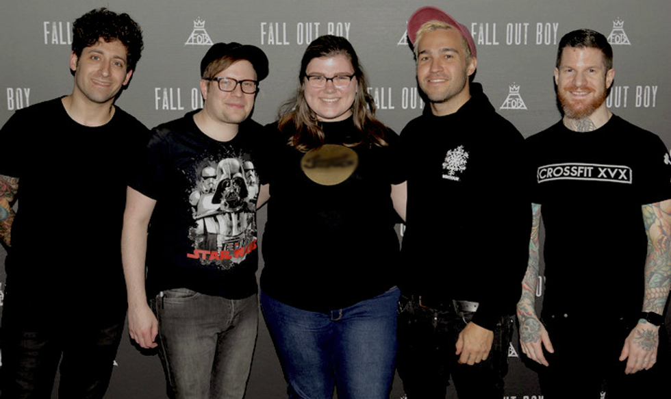 Wednesday, March 9th, 2016 didn't come soon enough and now that it's gone, I'm bummed. My friend and I got to the Nutter Center at three, like we were asked to by the VIP email. We got inside pretty quick but were then rushed outside by a fire alarm, which bothered bassist Pete Wentz, something he posted about on Snapchat (wish I could find the video of that but Snaps disappear!). After maybe twenty minutes, we went back inside, stood in line for more than an hour and a half and finally, my friend and I were so close to meeting Joe Trohman, Patrick Stump, Pete Wentz and Andy Hurley of Fall Out Boy.