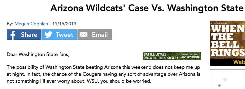 I'm sorry you're not a Coug because at the Edward R. Murrow School of Communication you would have definitely learned to reevaluate that article and probably would have changed it to where you would not have had as much negative backlash. But something U of A must have lacked to share with you was the fact that every action causes a reaction, and that's why smart journalism is so important.