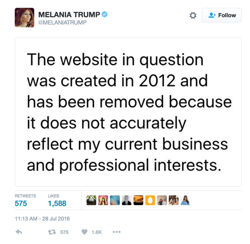 According to the CBS, Melania Trump’s official website has been disabled because the information regarding her college degree was falsified. Also on Wednesday, Melanie Trump tweeted: