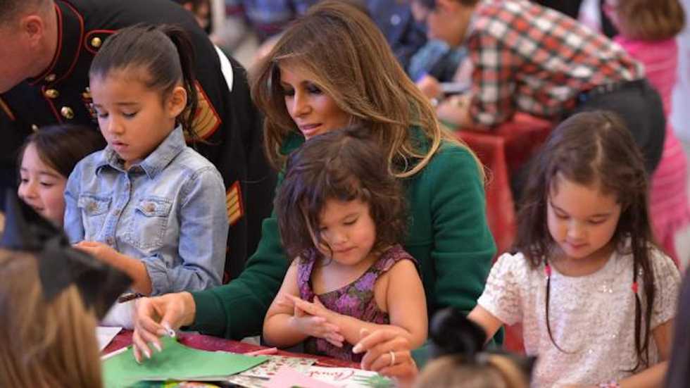 On November 27, she invited young students from Prince George's County's Joint Base Andrews, to be the first White House guests to enjoy the day's holiday festivities. This included sitting down with the children to decorate Christmas cards and write letters for troops who would be unable to come home for the holidays.