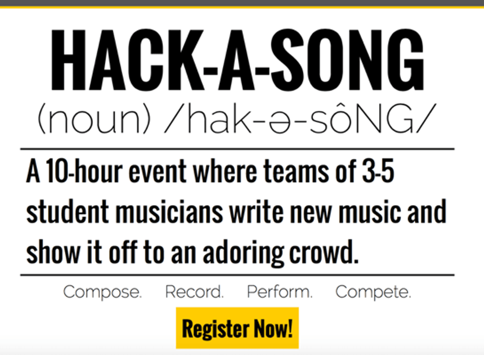 The first of the prototype mini events will be “Hack-a-Song”, a collaboration with the Independent Musicians Organization (IMO). Proudly proclaimed as “the first event of its kind at Carnegie Mellon,” the event promises, “A 10-hour event where teams of 3-5 student musicians write new music and show it off to an adoring crowd”. According to Varun Gadh, president of IMO, the organization carefully designed their advertising campaign to attract people who had no idea what hackathons are. “The first round of posters…didn’t really tell you much about it [hack-a-song], they defined the name, but that’s it…then we increase from that to the creation of the Facebook page and the website”.
