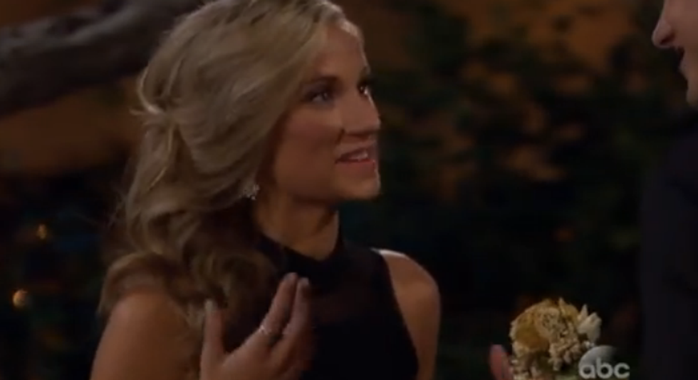 For her first impression, she gave Ben the bouquet from a wedding she "just so happened" to go to last weekend, and "just so happened" to have caught during the bouquet toss. When your competing on The Bachelor, there's reason to believe she just bought a bouquet herself and waited for them to dry up. #NOTIMPRESSED.
