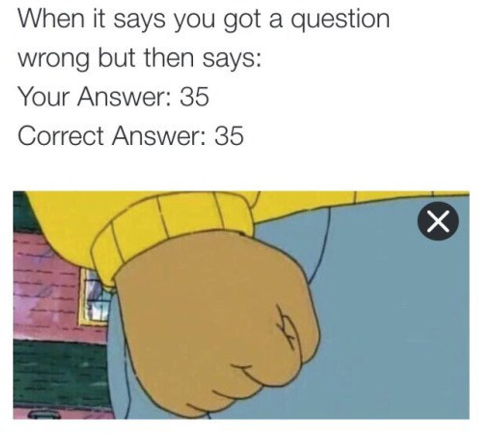 Its human nature that we get pissed off at times. You’d be weird of you weren’t angry at something once in your life. So that’s why everyone can relate to Arthur when he clenches his fist. This meme represents our irritability with many things in life, like stubbing your toe or having your significant other eat your food.