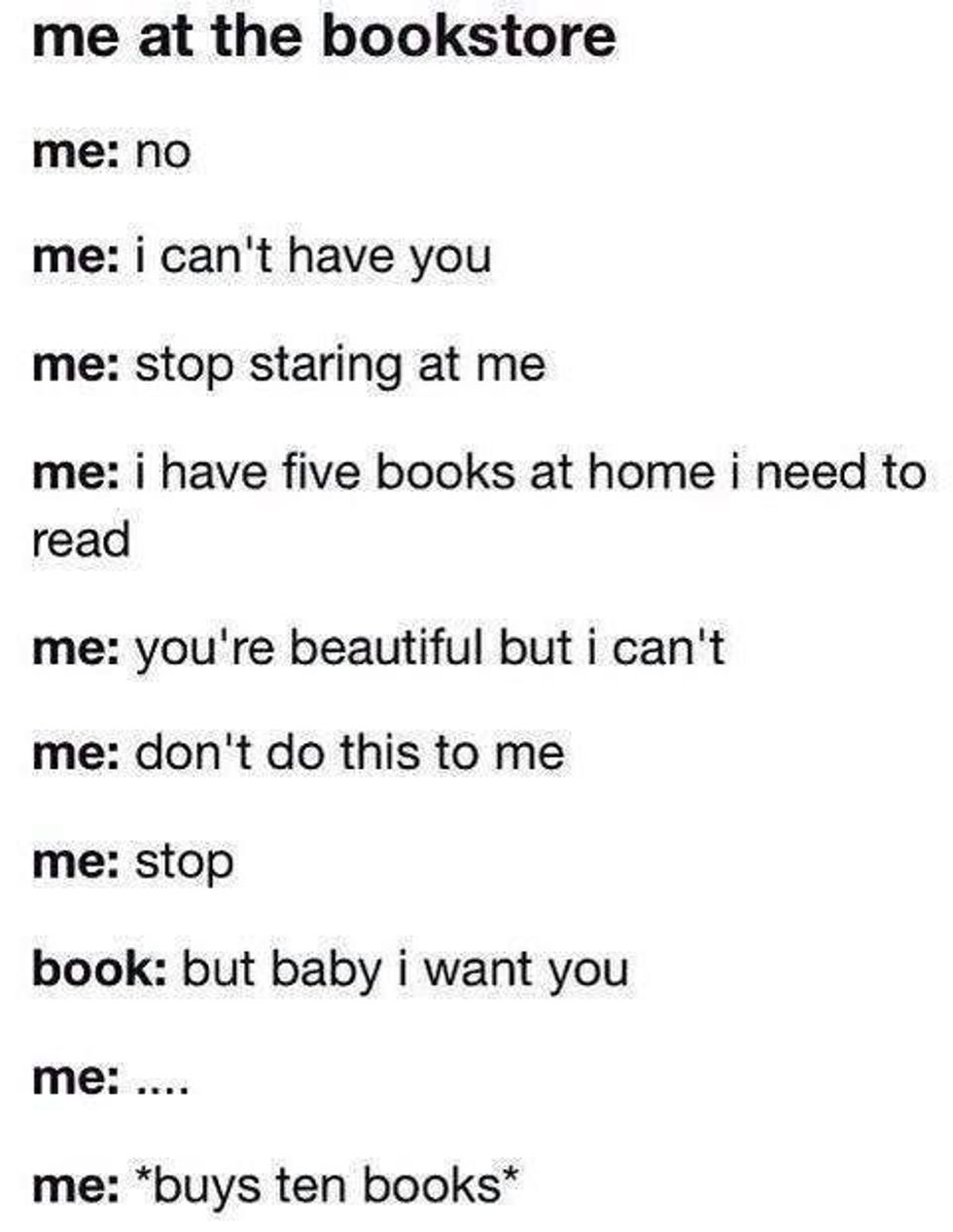 But while books are amazing, they can get pretty annoying, too. The characters do stupid things. The author hurts us. And, of course, we face the people who don't understand the power a book can do. So, without further ado, get ready to laugh and cry as you relate to the horrible yet honest truth of a bookworm through the power of memes.