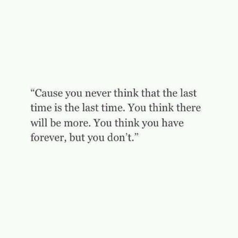 You never know what is going to happen tomorrow, so live everyday like it is your last and cherish your time with loved ones before its too late.