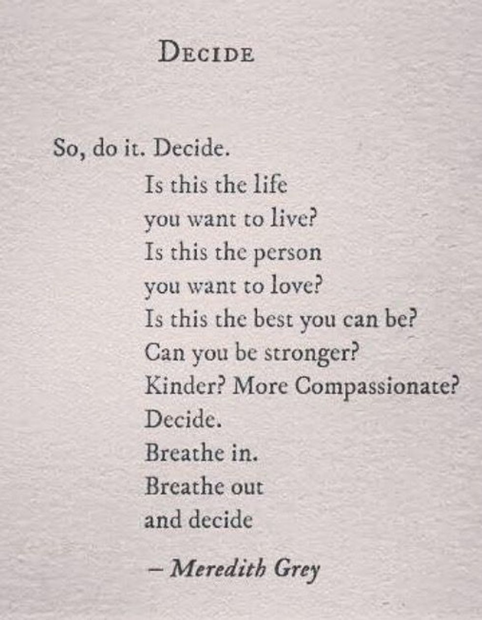 This is my favorite Meredith Grey quote. I love that she is always talking about taking control of your own life and making the decision of who you want to be. So decide.
