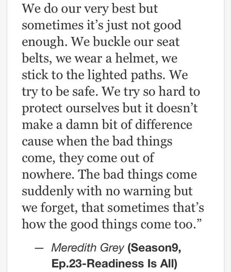 My favorite part of Grey's Anatomy is at the beginning and end when Meredith has those little inspirational monologues where she usually shares advice or a great life lesson. These quotes are something I like to keep in the back of my mind for inspiration whenever I need it.