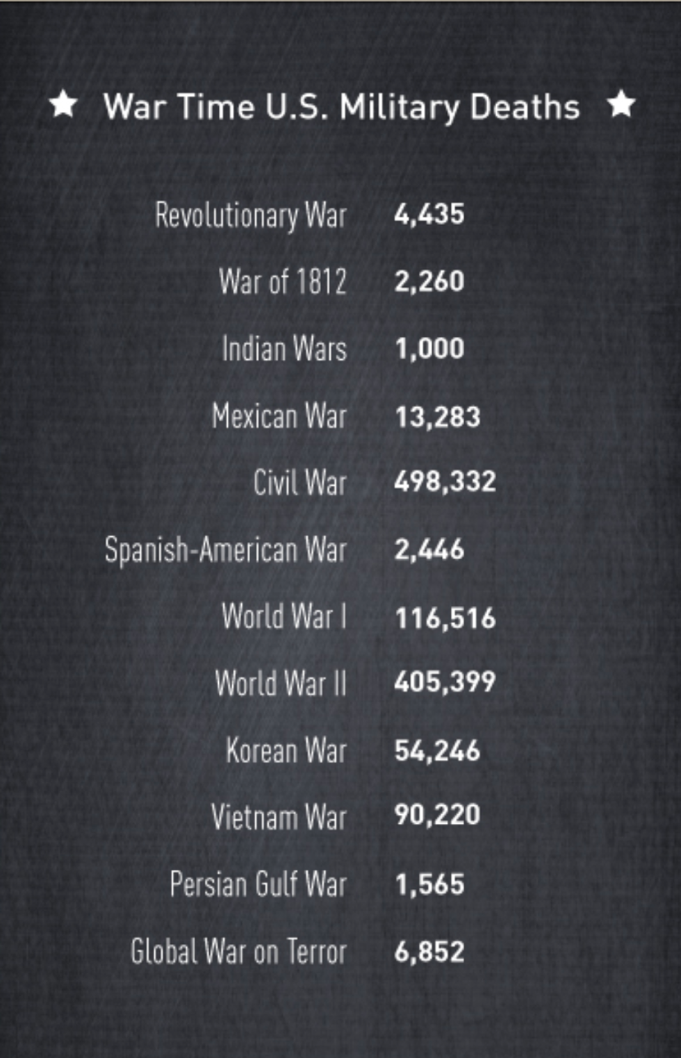 People forget about the 1,196,554 people killed in US Wartime Military Deaths.