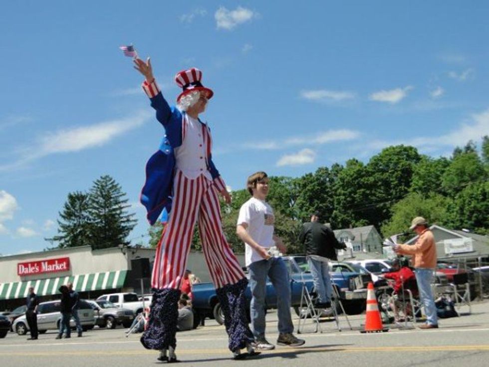 There is Uncle Sam on stilts.