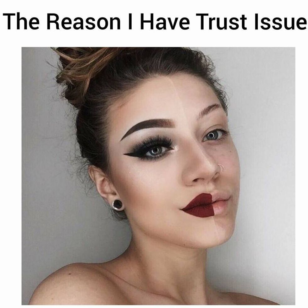 Men, or women who don't wear makeup, leave the girls and guys who do alone. Don't call them fake, don't shame them for wearing it. Either compliment them, or keep the opinions to yourselves. Don't say that because a girl has make up on, and look different without it, is the reason you have trust issues. You all are the ones who are dumb enough to think girls get out of the shower with gold eyelids and perfectly contoured cheeks.