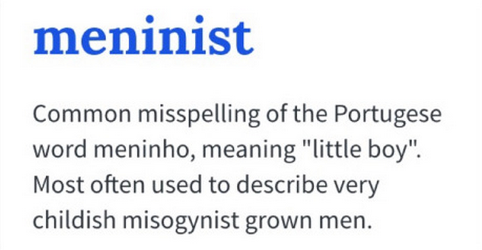 Meninist, something that started off as a "joke" on Twitter, is a movement of men who believe they are oppressed and want more rights. It's completely moronic. According to Urban Dictionary user VelvetCrowbar, "meninism is a mockery of feminism and proves we can't request equality without white men making everything about themselves." Meninist is synonymous with misogynist.