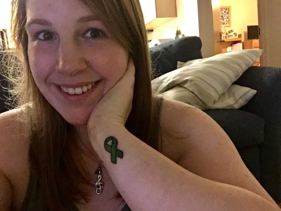 I recently got this little green ribbon tattooed on the outside of my wrist so that people could see it. I want people to look up the cause for the green ribbon (if they don't already know what it is), and think, "Wow. This person cares about people's mental health." I want people to know that even if we don't know each other, they can come talk to me about what's going on in their lives and how they're feeling. I don't want people to feel alone and like they can't talk to anybody. I want the entire world to know that I am a mental health advocate.