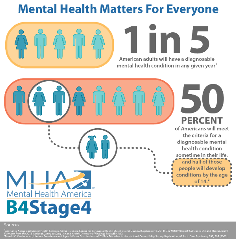 While I was interested in the content of the course before I even started the work, I found myself becoming more and more intrigued by the information I was learning. Soon, I was reading 2-3 chapters ahead of the actual class just because I wanted to know more. However, one of the things that I couldn’t seem to shake when learning all of this new content was the high amount of people that were suffering from mental health disorders within this country alone. In fact, it was just released that 42.5 million Americans experience some form on mental health condition every year. 9.3 million of these Americans experience conditions that severely affect their day-to-day lifestyles. So, why do we not hear more about this when so many people seem to be living with these conditions?