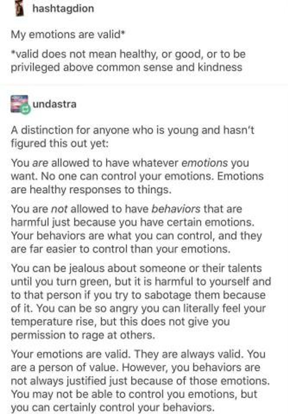Many of us grew up in an emotionally enmeshed environment and feel like we hold responsibility for managing the emotional states of others and vice versa, but that's not true. We are responsible for controlling, processing, and dealing with our emotions.