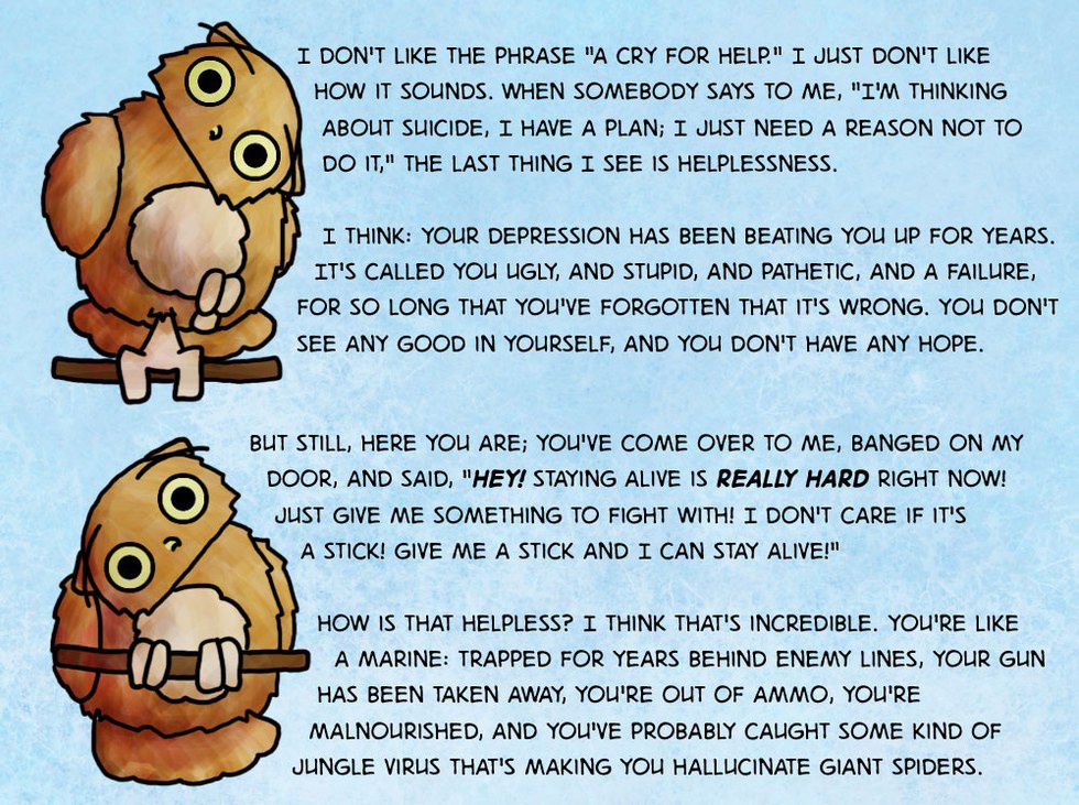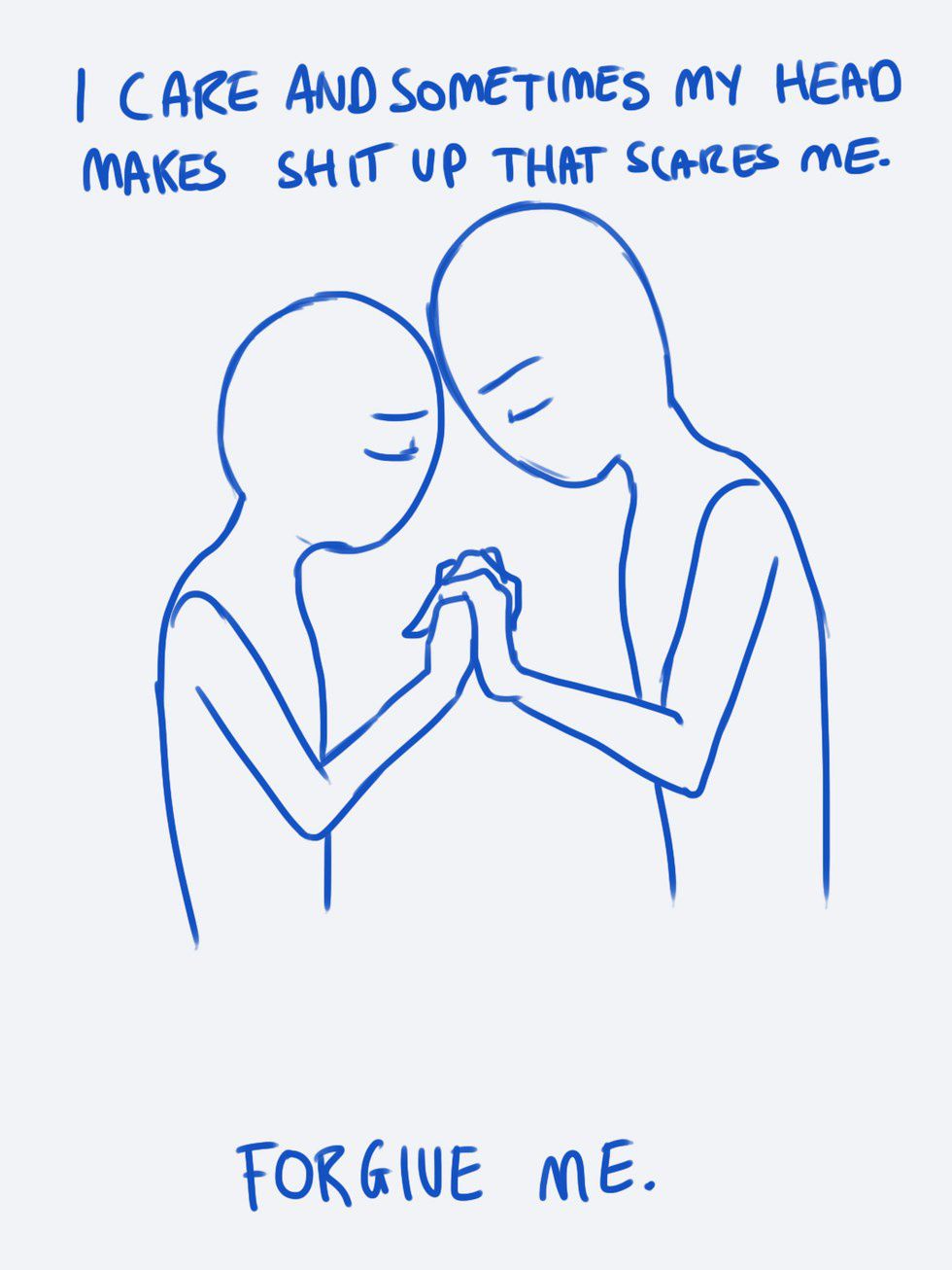 Also personal side note: Please don't get mad at someone for apologizing a lot. It's a coping mechanism. Reassurance is important.