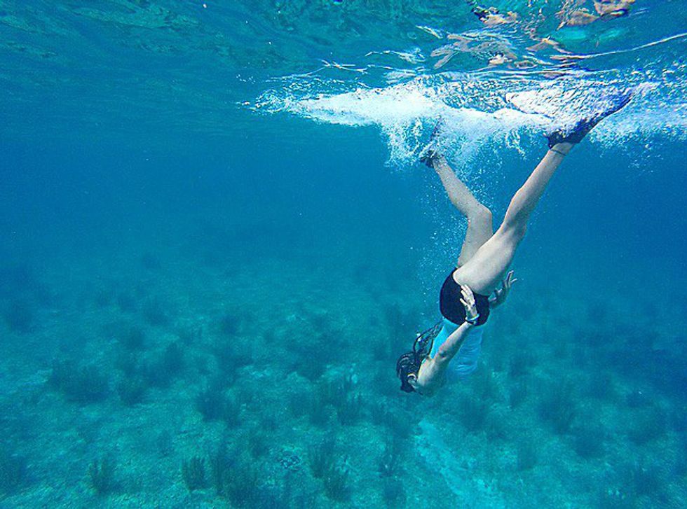A year prior to this trip, I tried and failed to snorkel several times. Each time I attempted breathing through the mouthpiece I would panic. I had never noticed claustrophobia in myself before, but now it seemed utterly impossible to breathe. When it came time to snorkel this time around, I wanted so badly to be able to breathe. I put my mask and mouthpiece on above water and coached myself through it. Though a little nerve-racking, it was fine. When I felt ready, I went underwater. As I swam around, my heart raced rapidly in my chest. I don't think I have ever concentrated so hard on something so simple. But eventually, I was snorkeling without any issues. On the second day, feeling slightly more adventurous, I dove down toward the reef and felt even more like a mermaid than before. Diving, twirling, flipping — it was marvelous.
