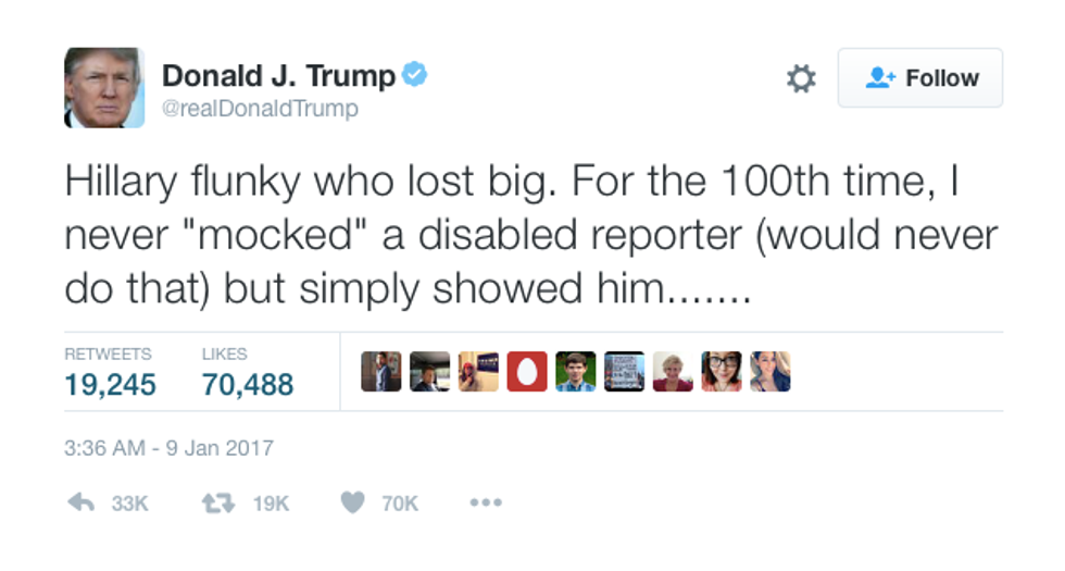 Secondly, Trump sat in for an interview with The New York Times on Monday morning. He stated that he was “not surprised” by the criticism from “liberal movie people”. Trump also stated, “people keep saying that I intended to mock the reporter's disability as if Meryl Streep and others could read my mind, and I did no such thing.”