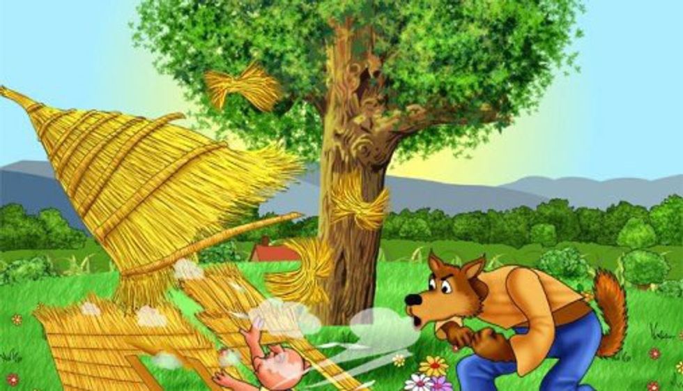 In the famous childhood story, The Three Little Pigs, there is a big bad wolf who threatens the pigs. "I'll huff, and I'll puff, and I'll blow your house down!" is how people remember him threatning them. That is not correct. He actually says ""I'll huff, and I'll puff, and I'll blow your house in!"