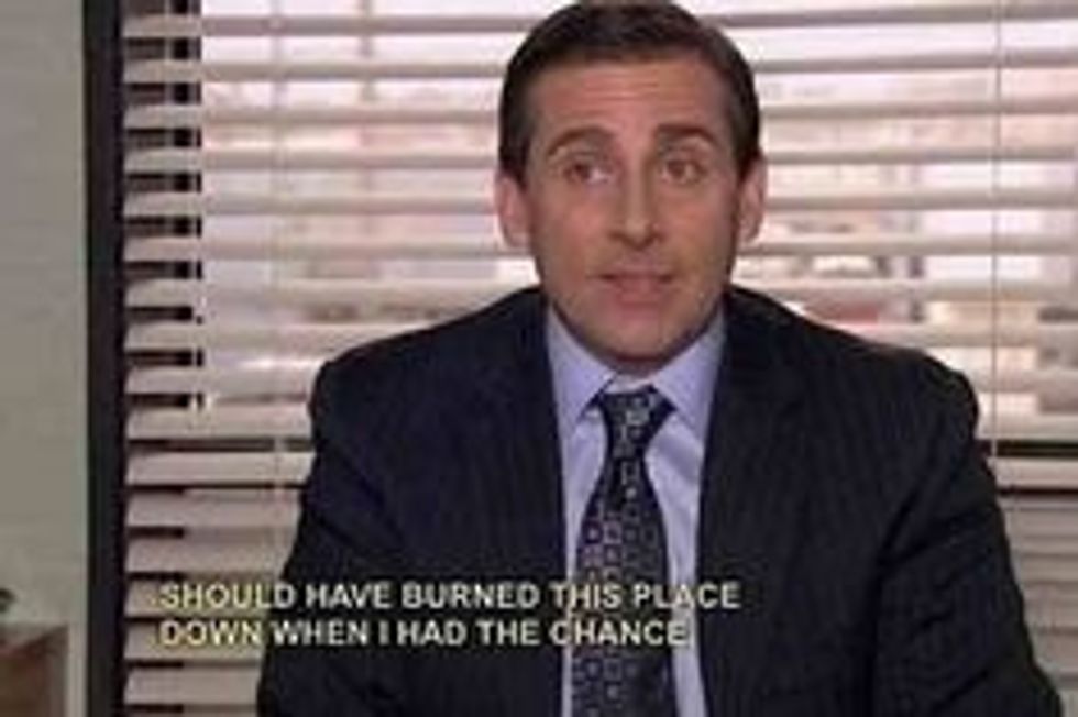 Michael banging on his World's Best Boss mug and singing this little tune is all of us at work.