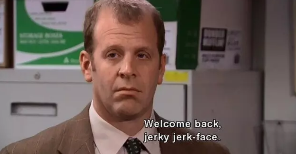 2. "Welcome back, jerky jerk face"