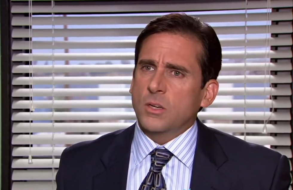 If you're like me, you don't like to cuss. Neither does Michael Scott. So as not to take the Lord's name in vain and use a bad word, he just says GD.