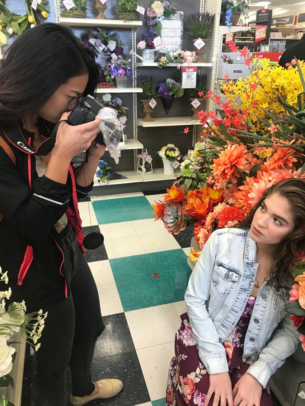 I brought two friends and we headed to the nearest Michael's, ready to take pictures. Walking into the huge store, I felt uncomfortable. There were people shopping and I felt like I was intruding by just having a photoshoot. But remember, the store itself encourages this! My friends and I headed towards the flower section first.