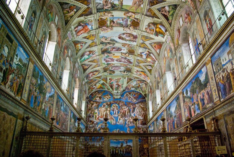 Michelangelo worked with a variety of sizes, dimensions and materials to explore the human anatomy and make his work as realistic and appealing to the eye as possible. His most famous work has to be the ceiling of the "Sistine Chapel" in the Vatican. It took him four years to complete more than 5,000 square feet of detailed and atomically correct frescoes depicting scenes from "The Book of Genesis," including depictions like the "Creation," "The Fall of Eden" and even "Noah's Deluge." Because of Michelangelo's background and love for sculpture, his figures seem almost three dimensional, making them not seem like paintings, but rather sculpture like. His works of art depict elegance and ideal beauty tying back to the ideas of the ancient Greeks.