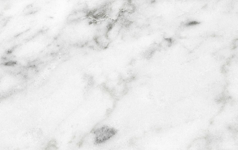 Striped by the sunlight that slips through the blinds.
