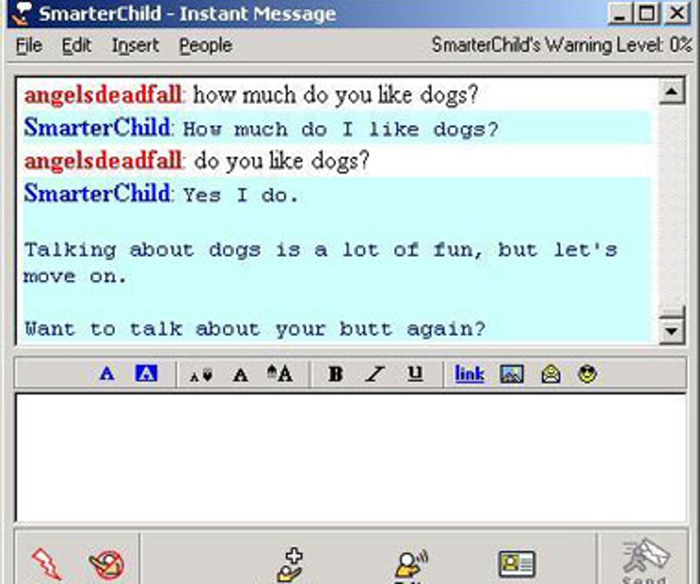 Instant messaging was the greatest method of socializing for you between the 6th and 8th grade. Texting was great, but IM was so personal. Your screen name (xXxxFaLL_OuT_gIrLxXxx) expressed exactly who you were and your away message was the perfect FU to let your frenemies know what you were up to ("hanging @ mall w/ BFFs, if ur not w/ me leave a mssg!!! :p") Plus, in your information box you could put the initials of all your best friends, and leave vague references to all your inside jokes, so everyone you IM'd new how fun and silly you guys were. There was so much passive aggression involved in the IM world, and it's never been quite repeated in texting (but Facebook did get close with the "Top Friends" app).