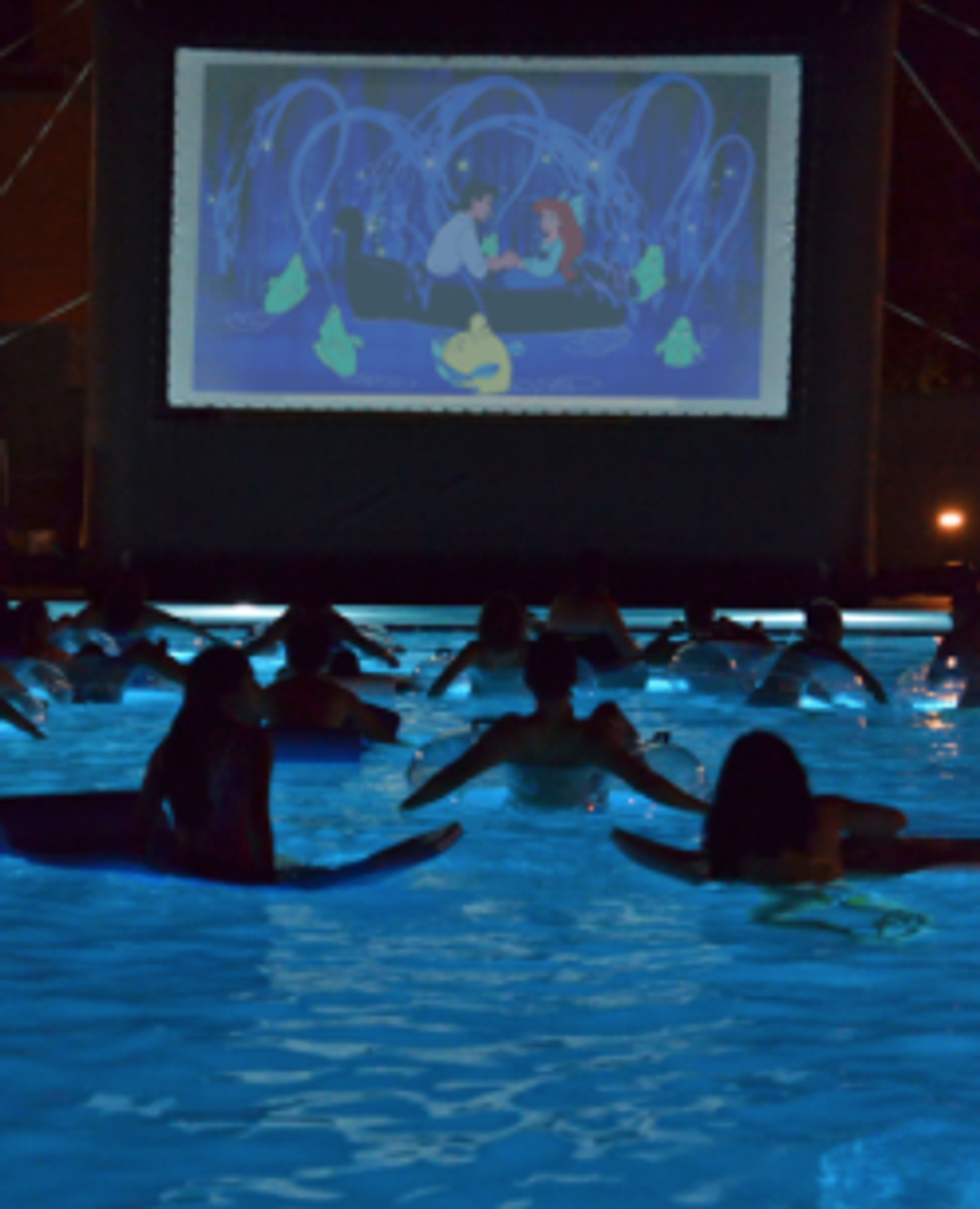 This is a simple way to soothe your inner mermaid and child all at the same time. Set up a projector outside that’s aimed at a flat surface and play whatever movies you’d like, preferably classic Disney ones. All of this while you’re floating around in the pool or hot tub.