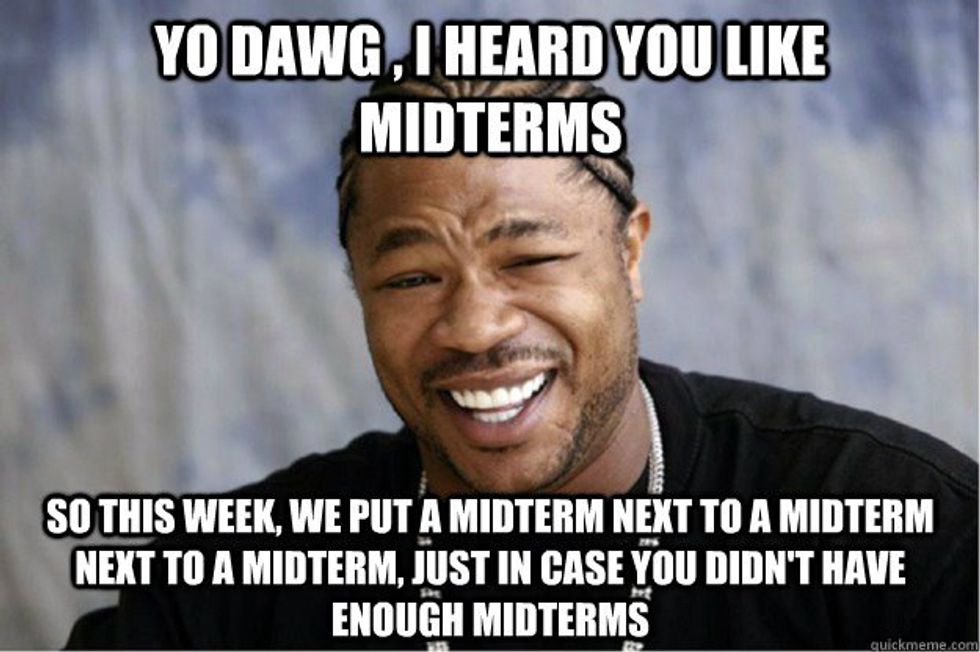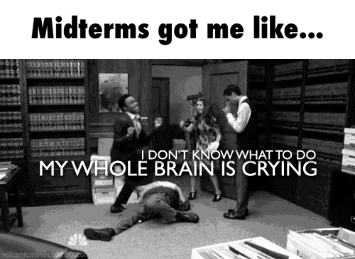 The month of October is among us. You've got the beloved pumpkin spice latte. You've got Halloween. You've got actual pumpkins. You've got scary movies. You've got presidential debates (an acceptable scary movie substitute this year). And for many college kids, you've got midterms. While mine are (thankfully) over, the struggle was definitely real up to this points. With the help of the internet, we can luckily express our feelings during these trying, trying times.