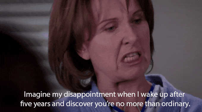 Well while Ellis Grey is certainly angry with Meredith for "being ordinary", you are stressed out about the impending doom about your midterms. You definitely don't want to let yourself down, as you can be your biggest critic, but in the same breath...Disappointing your parents can be just as bad (if not worse) if you tell them that you didn't do as well on an exam as you had hoped.