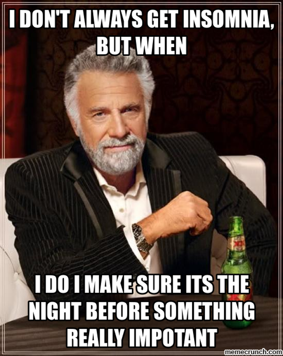 Sleep is for the weak, and you should know that. You chose college life over the possibly preferable option of video games, Cheetos, and having a permanent residency in your parent’s basement. You made a mistake and I can’t weep for you. Don’t complain about your workload. Hey, I might not get enough sleep, but that’s because I’m a phenomenal procrastinator. One of the best you will ever see. No, I’m really good. Trust me.