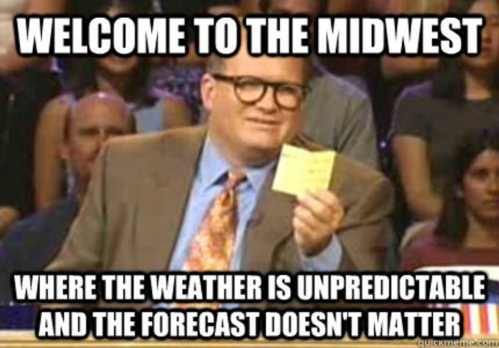 On the upside, the weather in the Midwest has taught us to always be prepared for anything and at least it makes for good conversation.