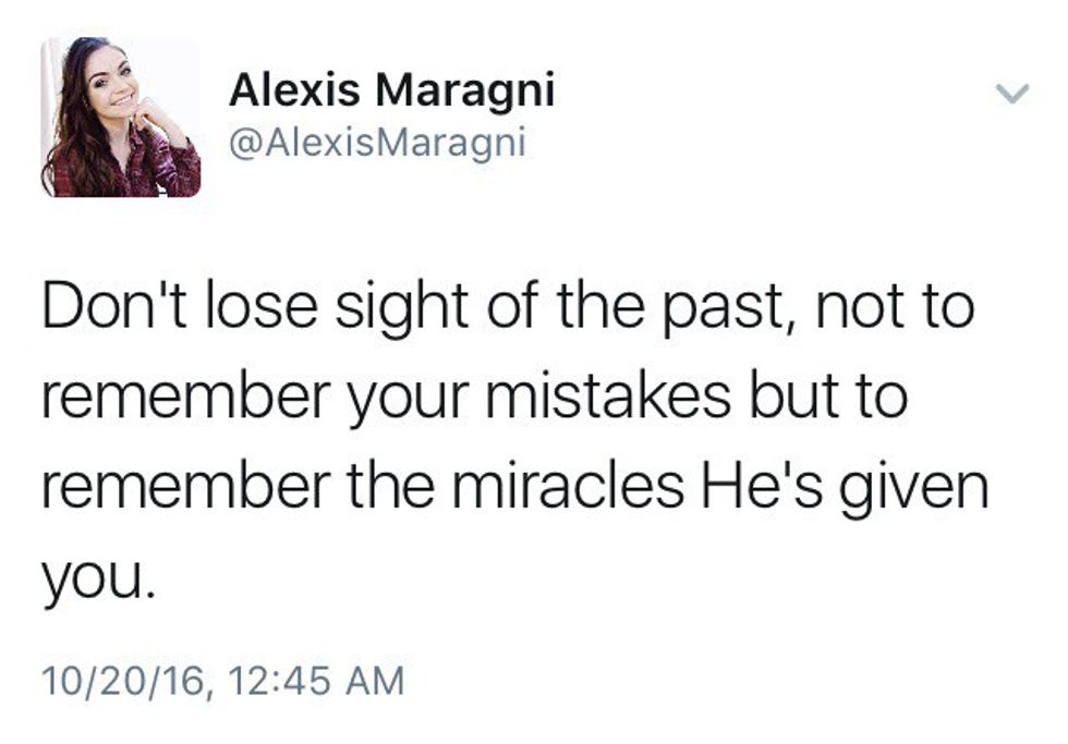 A wise woman from my church recently tweeted, "Don't lose sight of the past, not to remember your mistakes but to remember the miracles He's given you."