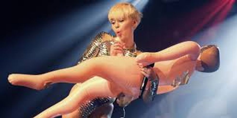 Ever since Miley Cyrus' breakup with ex-fiance Liam Hemsworth, she has not been the same. During concerts, she wore close to no clothing. She danced with giant inflatables shaped like penises. She made drug references in her songs. She further broke down her feelings in her hit song "Wrecking Ball" while swinging from an actual wrecking ball naked. She later takes a hiatus from the spotlight and then decides to come back as an innocent country singing lamb. She is welcomed into the spotlight with open arms. This I can accept but her reasoning for her behavior in an interview is what made me sick. Here are her exact words.