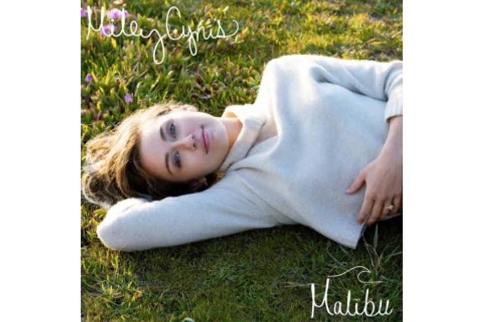 In the “Malibu” video, Cyrus sings under the soft glow of an evening sun, skips along the seashore and holds a whimsical bouquet of multicolored balloons. She frolics among pink flowers, draped in light, feathery clothing that conceals dark tattoos inked down both her arms.