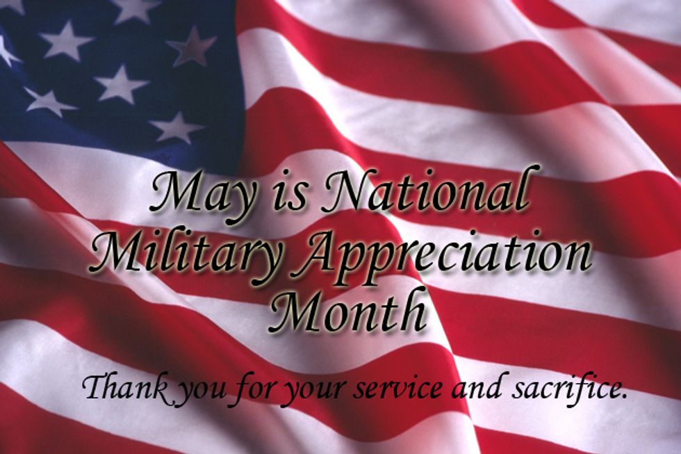 The month of May is Military Appreciation Month. In 1999, Congress set aside the month of May as Military Appreciation Month to ensure that the nation was given the opportunity to show their appreciation for the sacrifices and successes of military past and present.