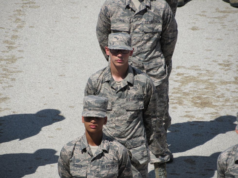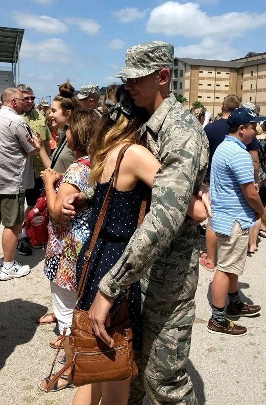 Before I knew it, the excruciating 7.5 weeks was done and over with and it was time to fly down to San Antonio, Texas to Lackland Air Force Base to watch my boyfriend graduate into a U.S. Airman. From the 5 days I was in Texas, it was the best experience to be apart of. From seeing him for the first time while running in the "Airman's Run" to walking out into formation to receive his Airman's Coin and chanting the "Airman's Creed," it was amazing! As I am a person who loves photography, I was capturing the entire trip through a camera lens. The best part for me was looking through my camera and seeing him looking up at me. This photo will always be one of my favorites! As many military families look forward to certain moments when reuniting with their loved one, the moment I was so excited for was tapping him out of formation. When I went to hug him for the first time in almost 2 months, it was the best feeling ever! He started tearing up and was smiling so brightly when I hugged him not only because he was actually able to hug someone without being screamed at by an MTI, but simply because he was happy to be looking at familiar faces.