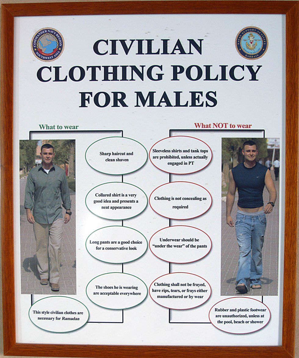 In the military, any article of clothing not considered a uniform are called civvies, or civilian attire. The picture on the right is not doing that guy any favors. He just looks like a blue falcon.