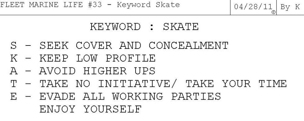 A term you'll hear from many Lance Corporals. It means you don't do anything; you just hide, take naps, or act like you're doing something so you don't actually have to work.