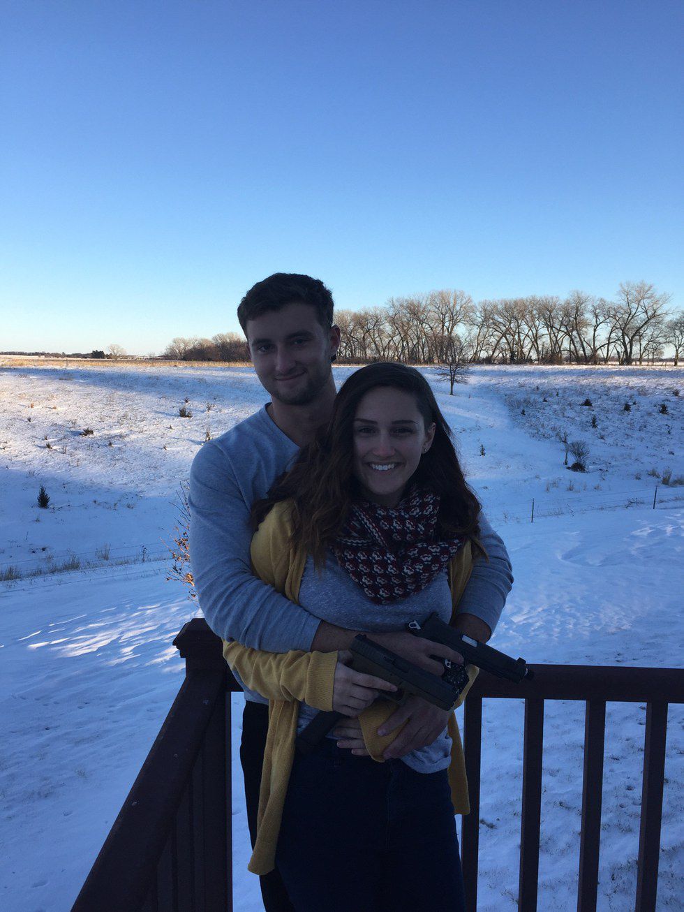 Photo: My boyfriend, Alex, and I over Christmas 2015 while he was home for two weeks. That day was my 101 course on how to hold, load, handle and shoot various guns.