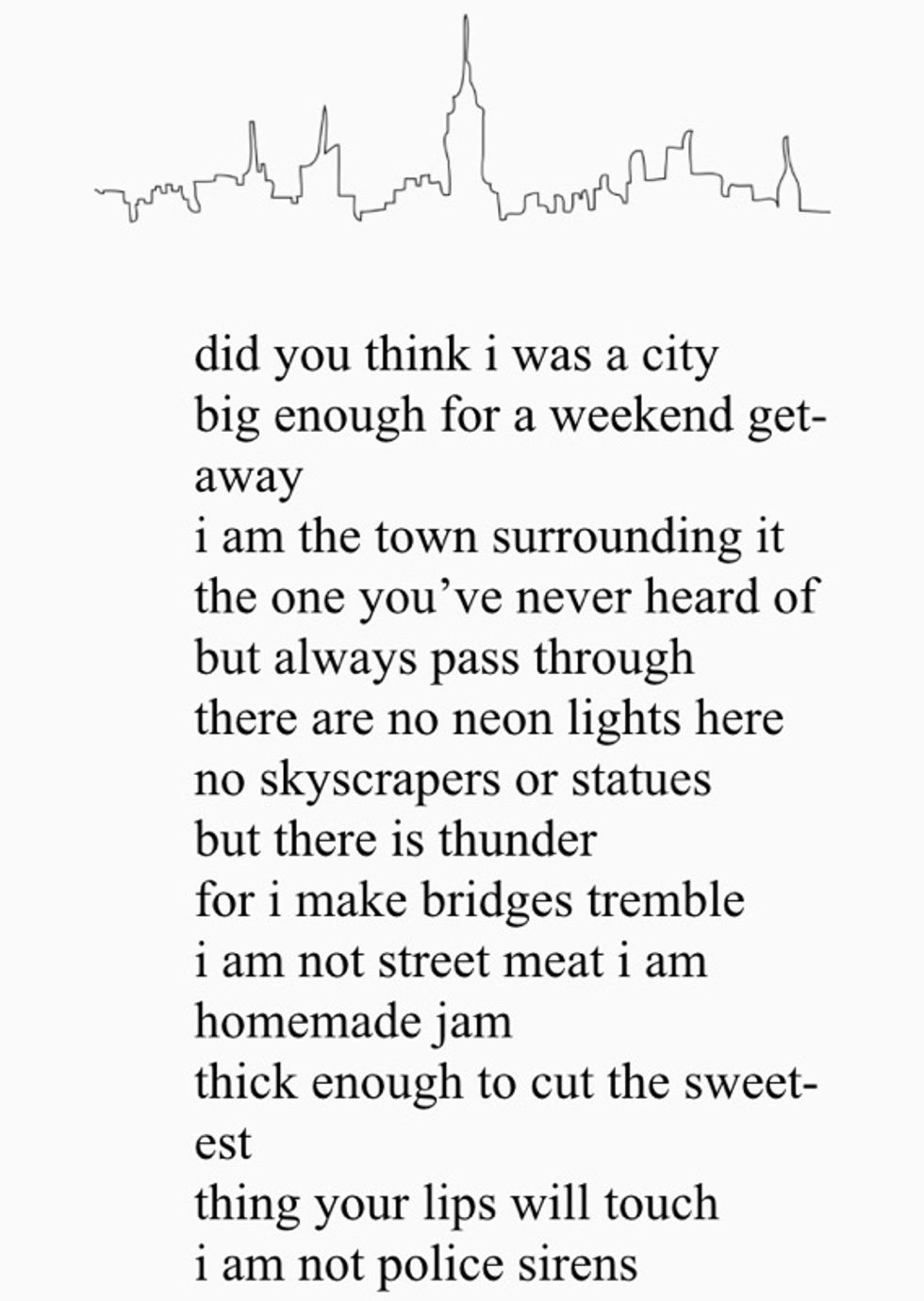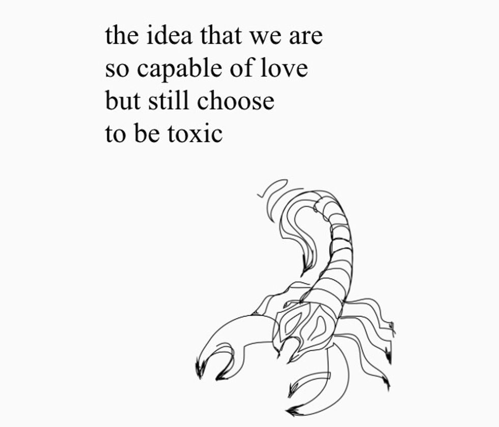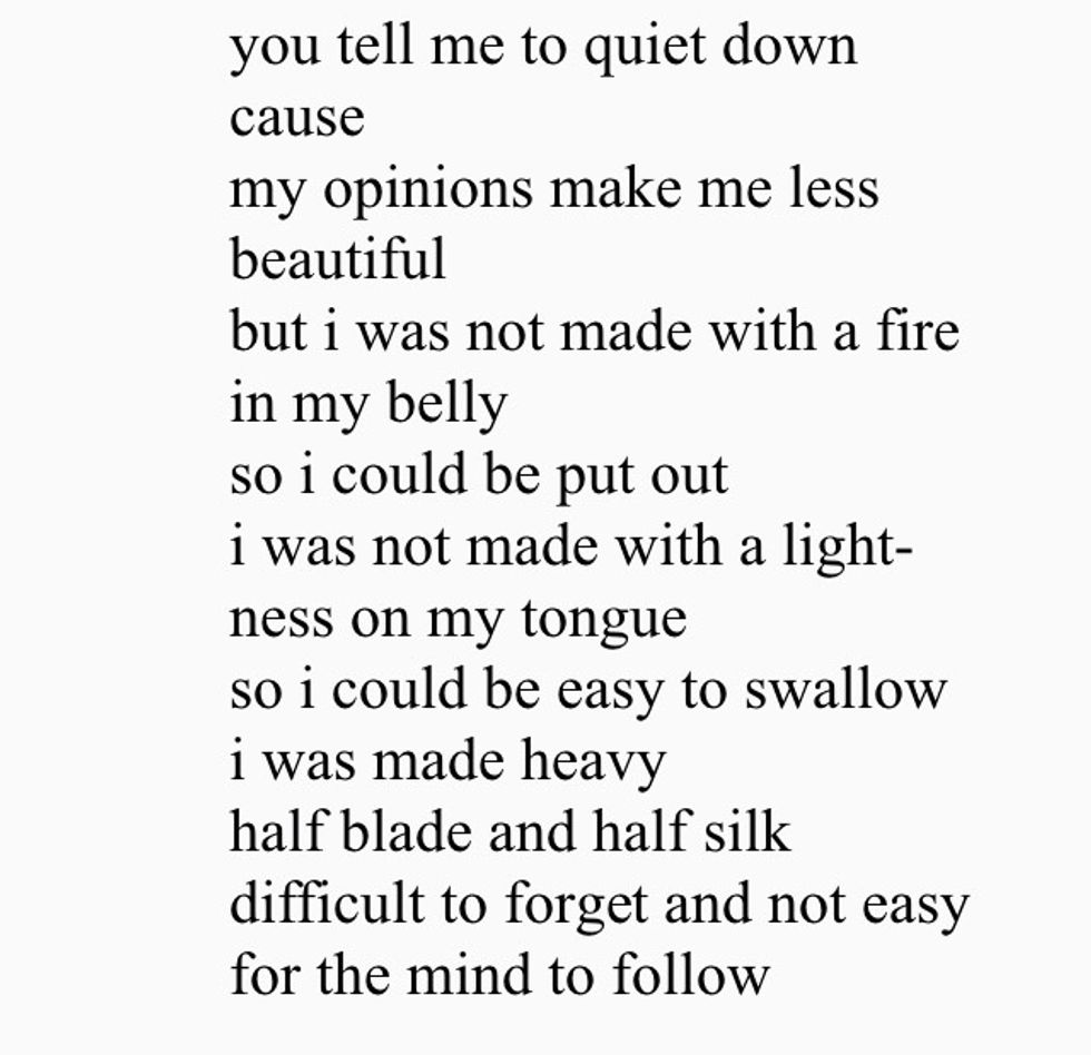 Then, I was introduced to "Milk and Honey." After going through a massive change in my life, a friend of mine suggested I buy the book of poems written by Rupi Kaur. With no questions asked, I found my way clicking "check out" on Amazon within minutes. I am one that expresses emotion in extremes, and the only mechanisms that help me through are writing, drawing and pretty things. Clearly, I have a spending problem—if you haven’t figured that out yet. I like to pride myself on being a self-taught retail therapist. These activities calm my mind and help to make sense of all of the chaos. Reading was NEVER something that felt peaceful for me. Rather, it made me antsy. Then I opened up the first page of Rupi Kaur’s book of wonder and was instantly hooked. Reading through "Milk and Honey" was as if I was reading about myself. Kaur is able to write about her personal experience in such a fantastical manner. Her style is unlike anything I have ever seen before. Almost every page had a drawing, a way in which the author expressed her emotions. As I read, the more I wanted to keep going. I had a new epiphany page after page. I sat in the same spot reading each line of text three times over. If "Milk and Honey" can impact my life, I assure you: it will change yours, too.