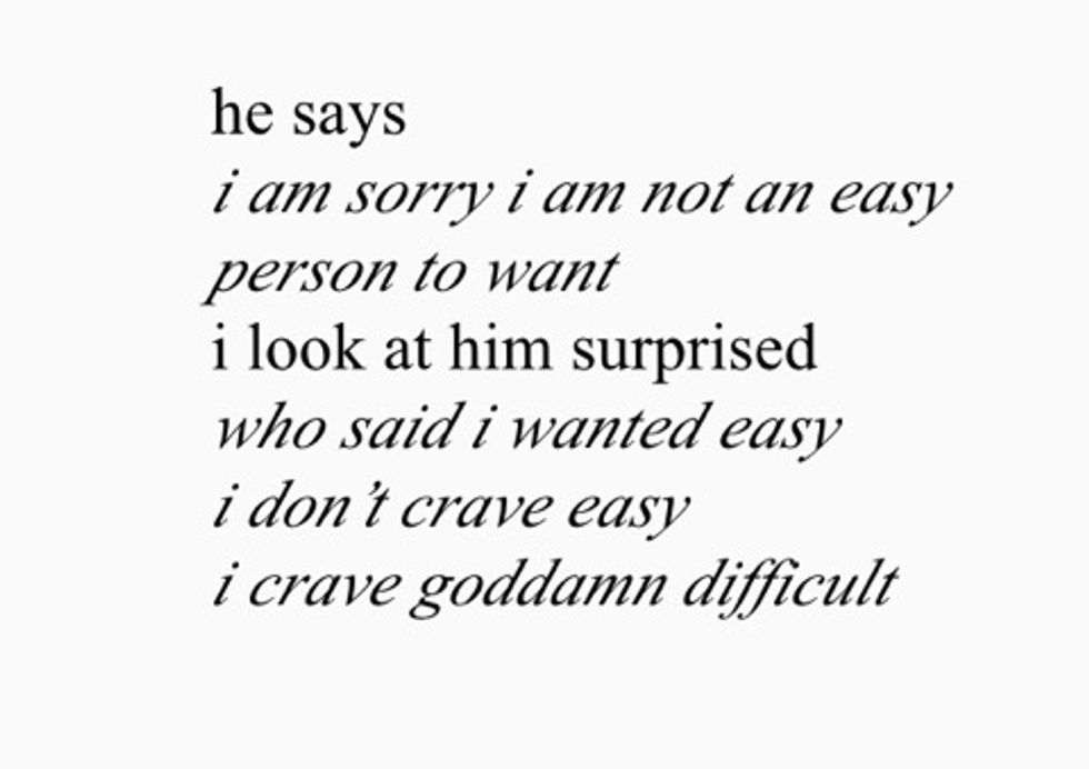 This is the story of my life. The easy way out is clearly not human nature. Why do we always thirst for the chase?