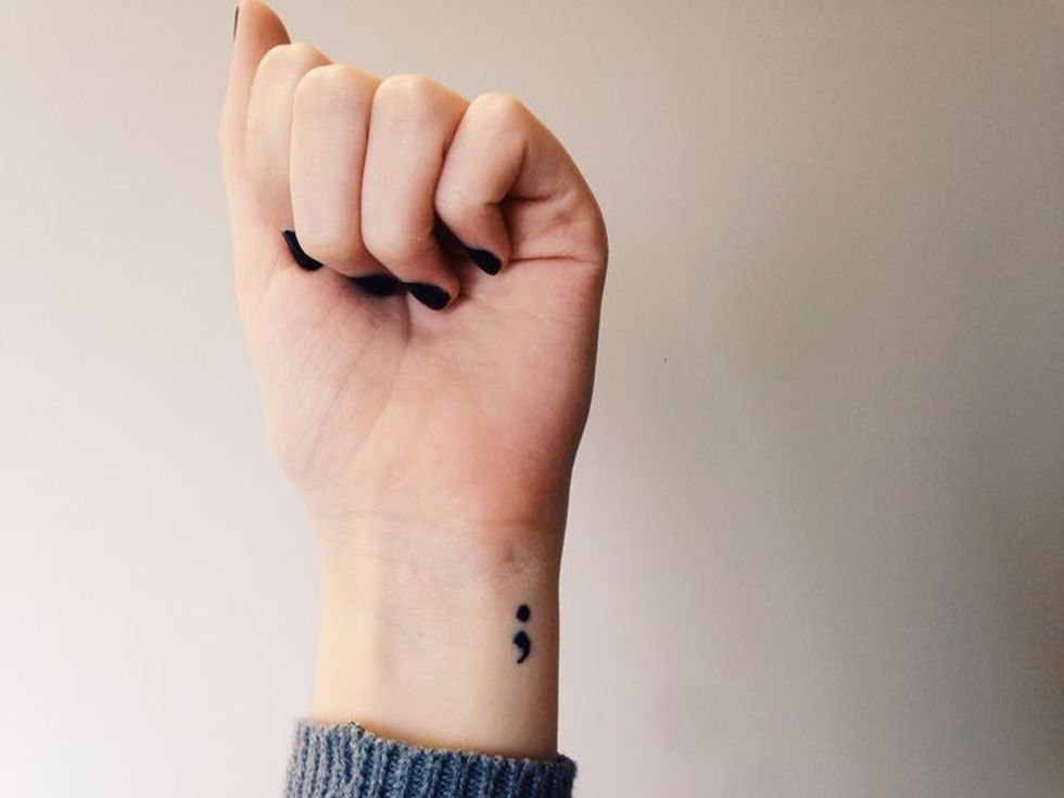 Semicolons are used in place of ending a sentence; semicolon tattoos are a powerful representation of almost ending your life but persisting.